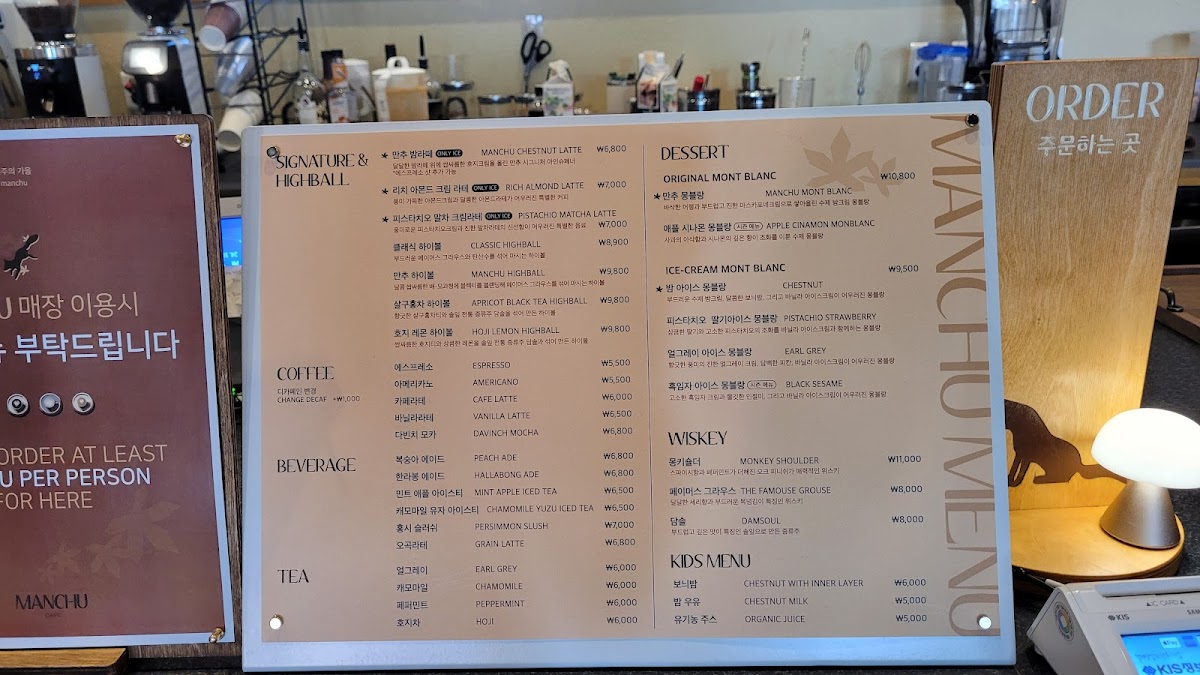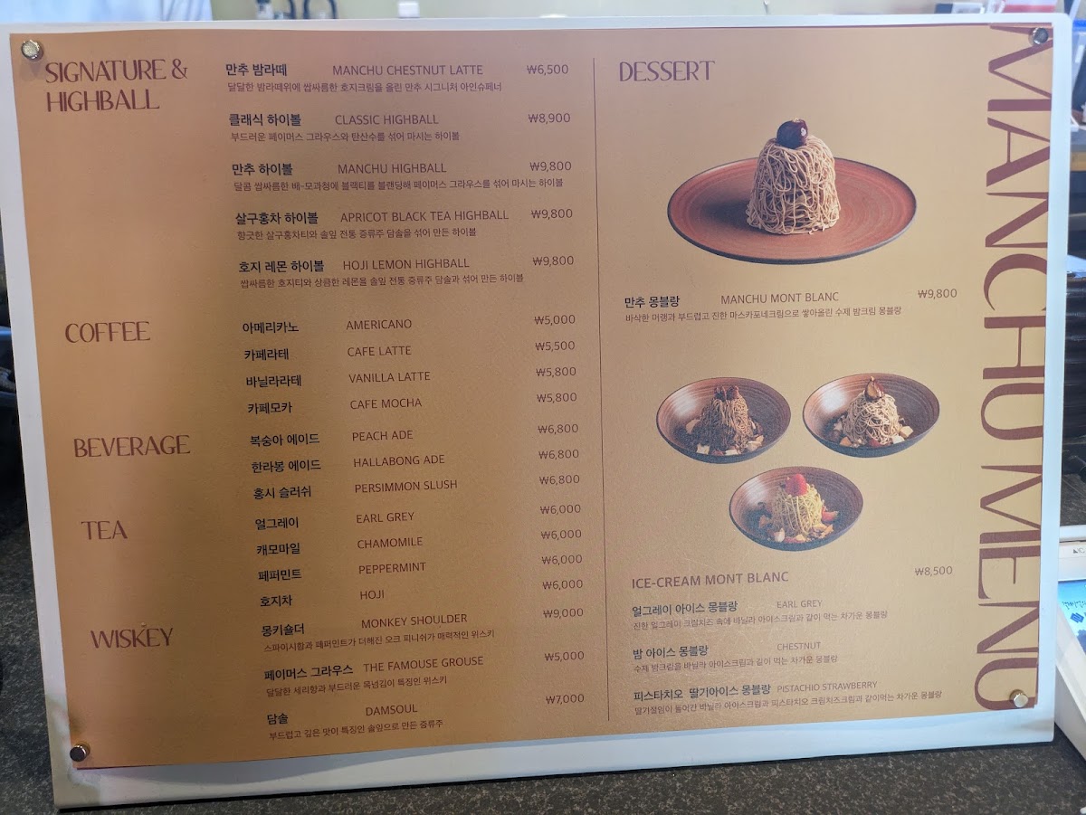 Manchu Cafe (만추 카페) Menu